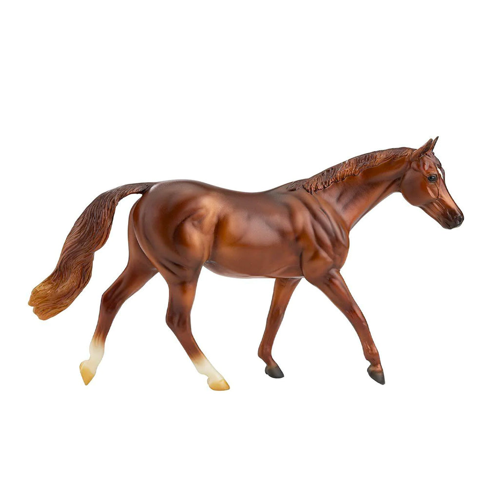 The Thoroughbred is widely-known for its use in racing, but the breed is also is a wonderful mount for recreational riders! This coppery chestnut mare has a white star on her forehead and two hind socks.