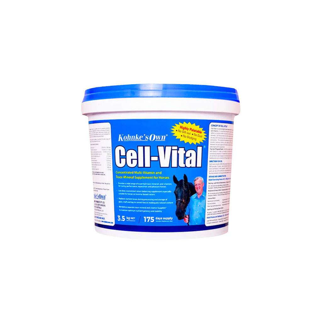 Cell-Vital is a multi-vitamin and trace-mineral supplement which is ideal for resting or working horses when their diet is low or inadequate in nutrients required for overall health and vitality.