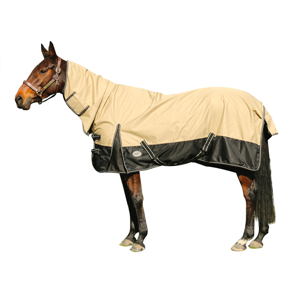 Eureka 600 Denier Waterproof Breathable Ripstop Combo with ripstop grids to provide extra fabric strength. A Quality waterproofing treatment process has been applied to this fully cotton lined body with satin lined shoulders, chest, lower panels and combo neck. Complete with double cross over surcingles, double chest strap system, shoulder gussets, rump darts, removable leg straps and tail flap.