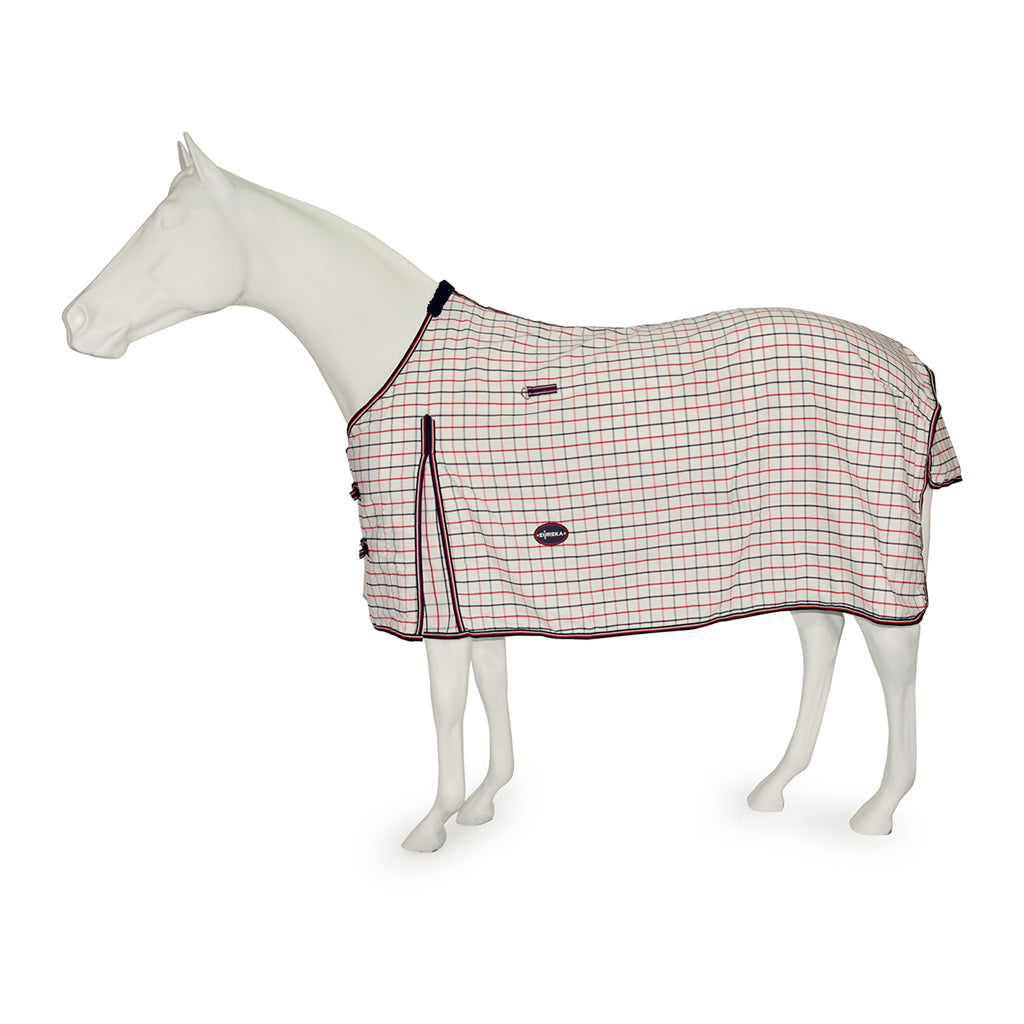 Rugs are 280gsm ripstop 100% polyester material. The ripstop grids provide extra fabric strength to this fully bound rug with taffeta lined chest, secure double chest strap system, shoulder gussets, rump darts, removable leg straps, large tail flap & fleece wither protector.