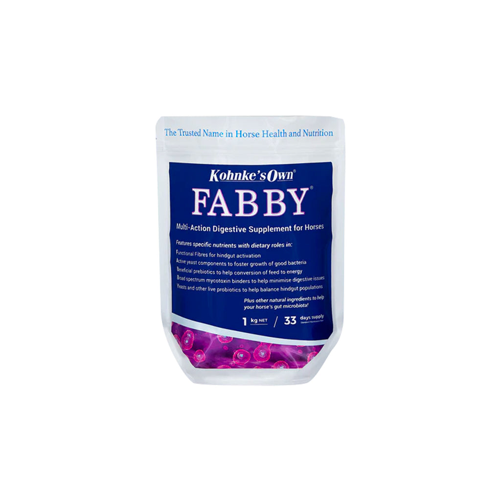 Kohnke’s Own® FABBY® has been formulated using the latest scientific knowledge in probiotic and prebiotic research, specifically to improve digestive health and function which is crucial for an efficient gastro-intestinal system of all horses regardless of age, diet and exercise levels.