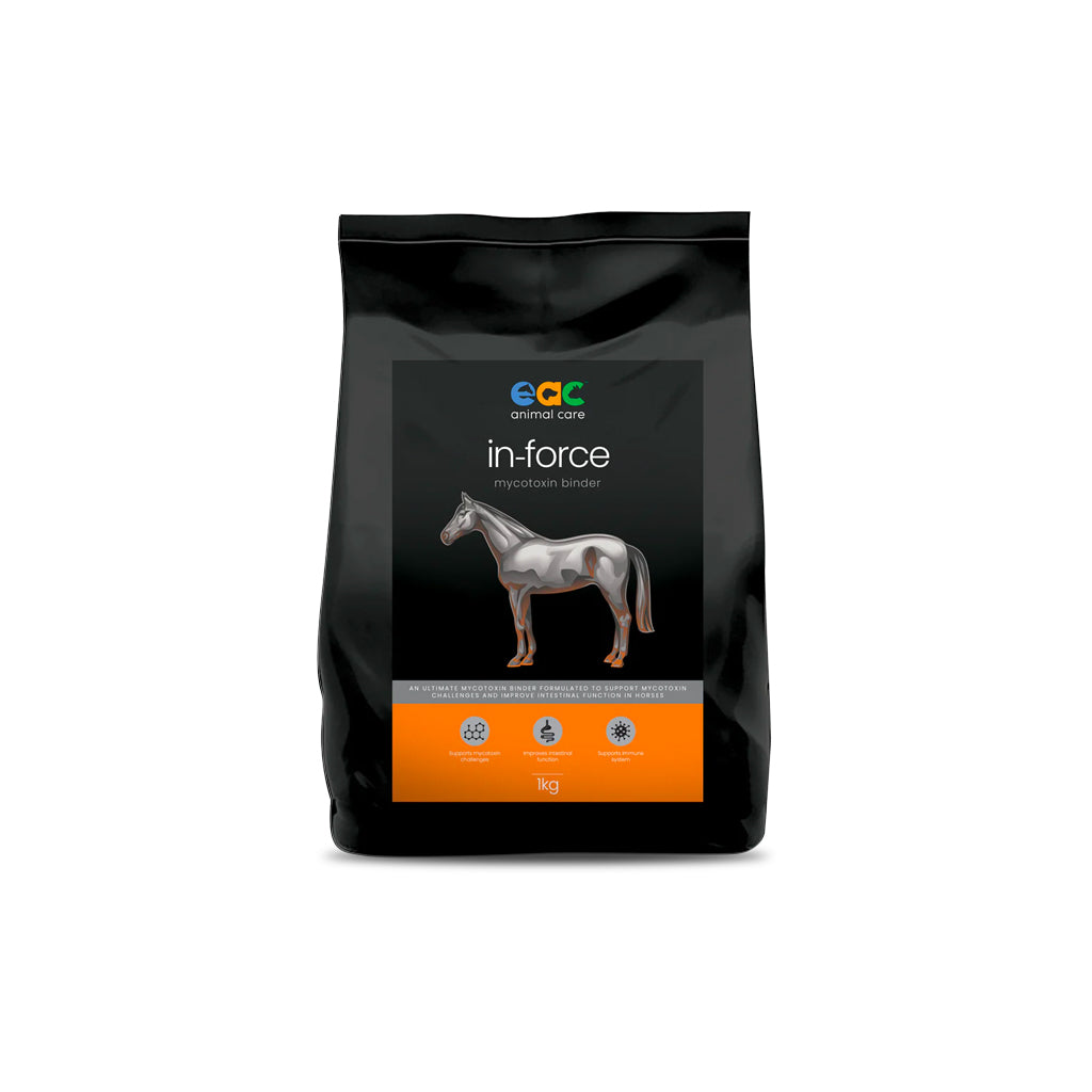 in-force is the new generation of mycotoxin binders. It is a broad-spectrum mycotoxin binder formulated to support equine immunity, digestion and intestinal function.