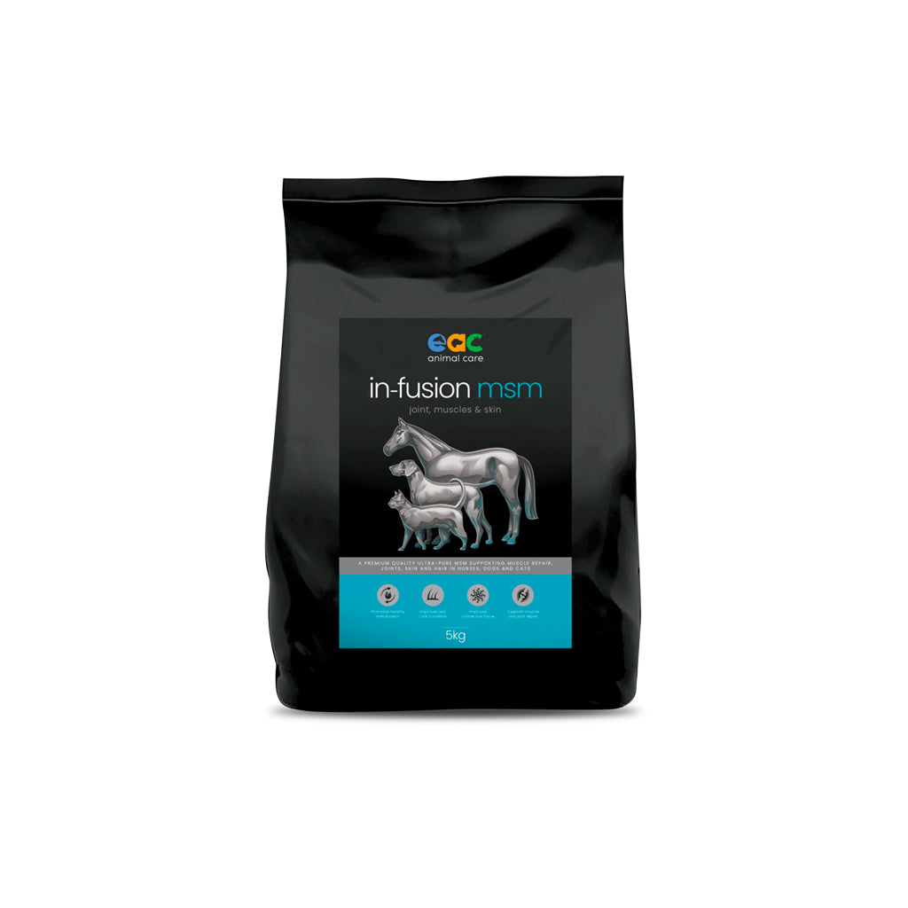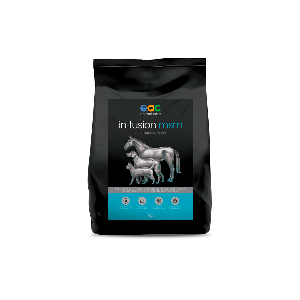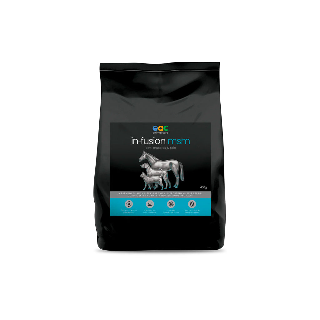 MSM can support your horse when dietary levels of MSM is low and can assist with muscle repair, joint support, hoof, skin and hair condition.