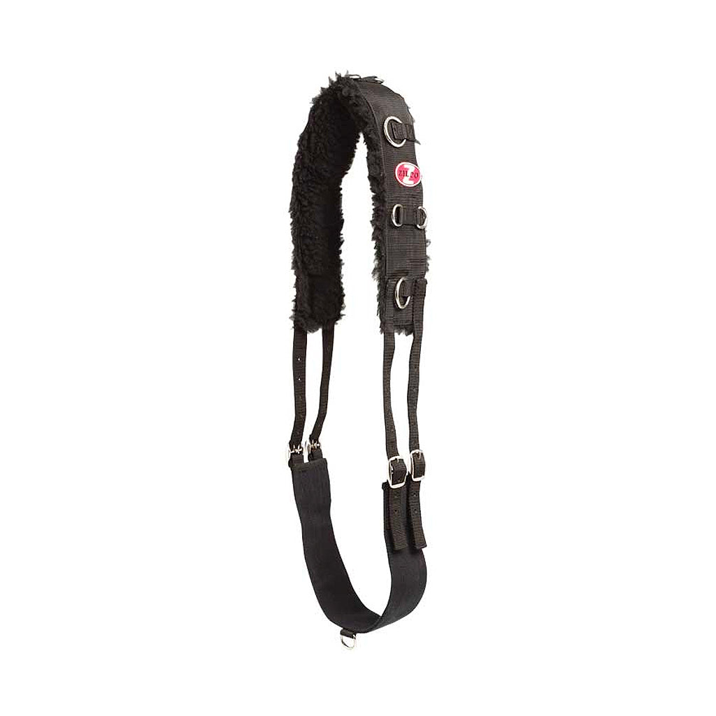 Polypropylene webbing training roller with fleece lining for added comfort. Includes 10 nickel plated dees to give endless configuration options and includes a double buckle girth with dee.