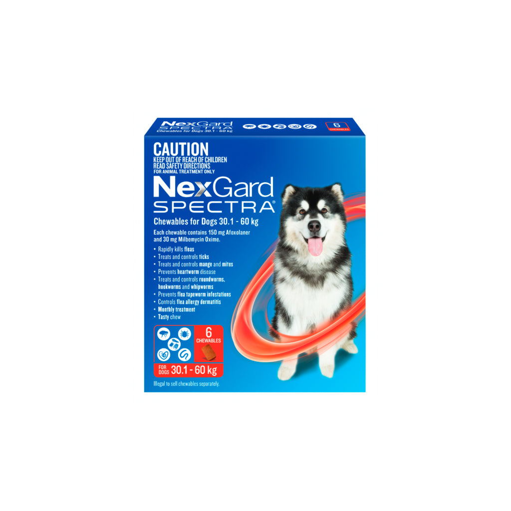 NexGard SPECTRA makes parasite protection easy, with flea, tick, mite, heartworm and intestinal worm protection in one monthly treatment. Best of all your dog will love it, with 100% of owners saying NexGard SPECTRA was easy to give to their dog1.